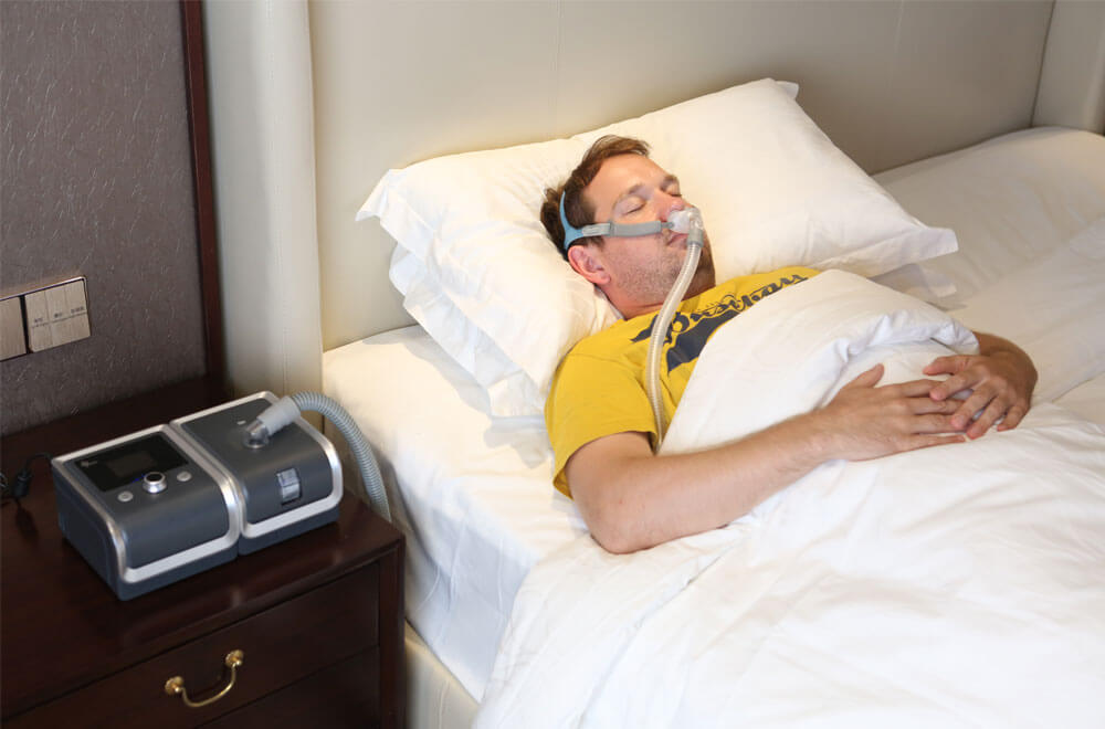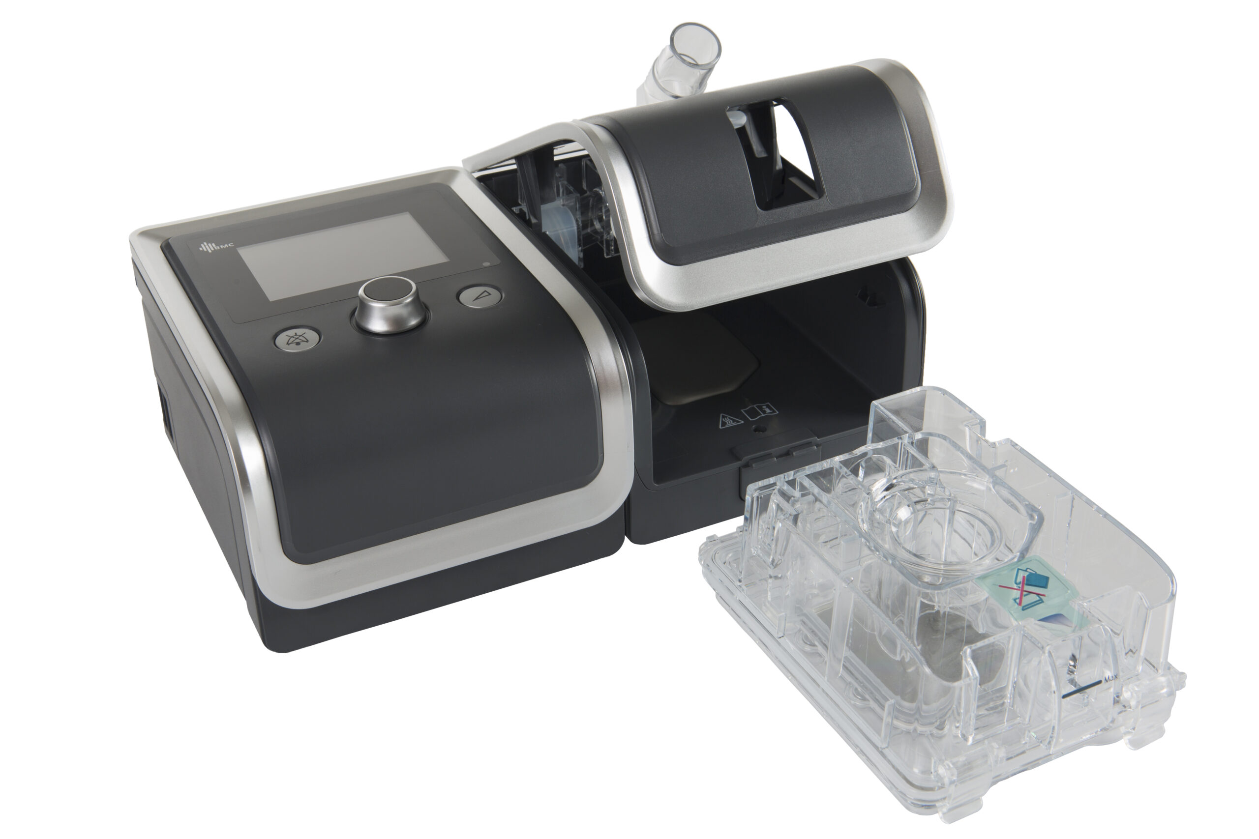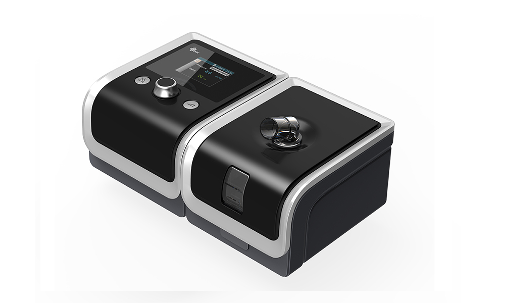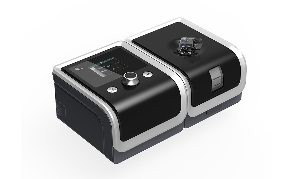 This device helps people with obstructive sleep apnea (OSA) breathe properly during sleep by automatically adjusting the air pressure delivered through a mask to keep the airway open.
